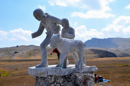 Monumento al Pastore si trova in località Fonte Vetica ,Campo Imperatore. Il 13 ottobre 1919 il pastore Pupi Nunzio di Roio muore con i suoi figli sorpreso da una tormenta di neve, la moglie nel disperato tentativo di portare loro aiuto impazzisce e muore dal dolore.