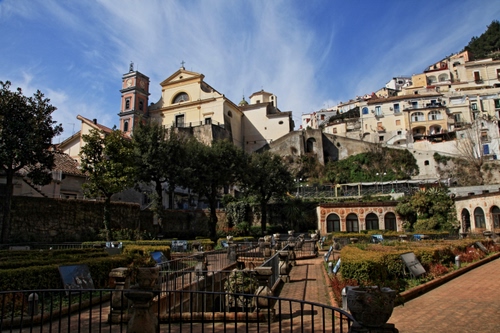 Collegiata di Santa Maria a Mare: si trova sul monte Torina e prende il suo nome dalla Statua che nel 1204 venne trovata sulla spiaggia di Maiori. La chiesa che originariamente era dedicata a S. Michele Arcangelo è di origine antichissima e fu oggetto di vari interventi di restauro e di ampliamento, in particolare negli anni 1529, 1748 e 1836. Nel 1505 riceve il titolo di Insigne Collegiata da parte del Papa Giulio II. Soppressa la prepositura da Benedetto XIII nel 1727, viene successivamente ripristinata con la bolla Romanus Pontifex di Papa Benedetto XIV del 2 aprile 1742, esecutoriata dalla Regia Corte il 18 maggio successivo. Il regio assenso prestato da Ferdinando IV di Borbone il 6 febbraio 1789 agli Statuti dell'Insigne Collegiata, attribuiva all'Università dei Cittadini il diritto di patronato e nomina delle principali dignità capitolari (Prevosto e Primicerio). Il soffitto a cassettoni, commissionato dalle famiglie Mezzacapo, Lanario e De Ponte, che copre la volta della navata centrale è stato eseguito nel 1529 dal pittore napoletano Alessandro de Fulco ed è una delle poche parti antiche che sono rimaste invariate. La sagrestia monumentale è stata edificata nel 1866 sul luogo ove un tempo sorgeva il palazzo prepositurale donato dalla Città al Prevosto pro tempore nel 1507. Nella cripta, il cui altare conserva le spoglie di San Clemente, martire Romano (giunte a Maiori nel 1785 grazie all'interessamento di monsignor Nicola Molinari, vescovo di Ravello e Scala) è allestito il museo d'arte sacra "Don Clemente Confalone". Il monumentale organo plurifonico della chiesa fu costruito da Zeno Fedeli di Foligno e collaudato dal maestro D. Lorenzo Perosi.
