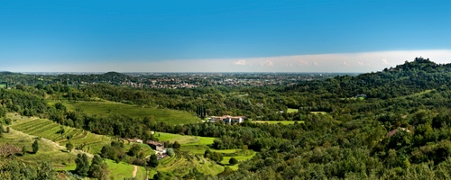 panorama della pianura padana fotografata dalla val curone in brianza, all'estrema destra il santuario di montevecchia, al centro la galbusera bianca,oasi del wwf, e a sinistra la galbusera nera