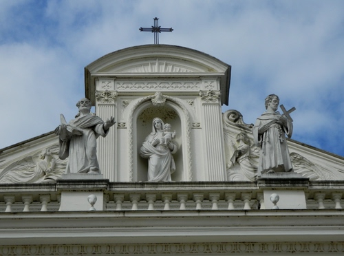 Statue sulla facciata della Basilica della Madonna delle Grazie. Benevento