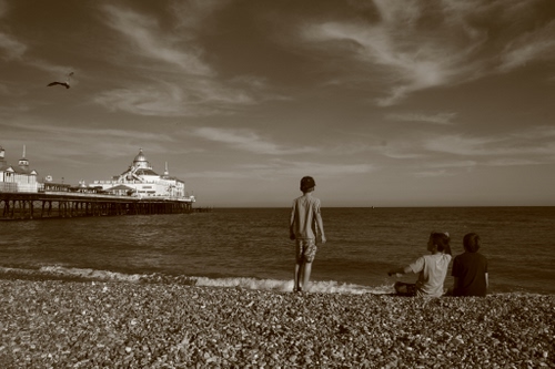 Tre Ragazzini, Tre Amici che giocano sulla spiaggia, Eastbourne, un fresco pomeriggio d'agosto 2013.