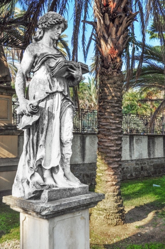 Statua consumata dall'erosione del mare e del tempo nei Giardini Ormond di Sanremo.