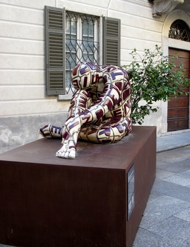 Statua in bronzo della scultrice Rabarama (Paola Epifani) intitolata Tran-lettera.