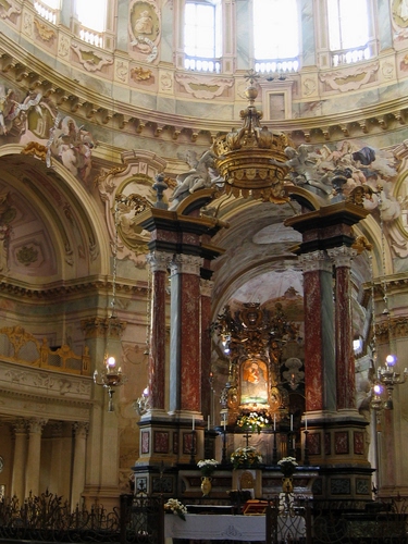 Grande altare barocco al centro della santuario di Vicoforte (CN).