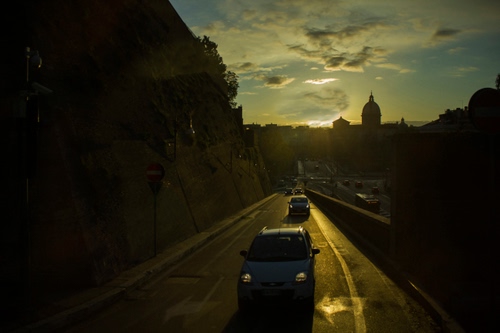 Alle porte di Roma,all'alba, in attesa di procedere presso il Vaticano per l'udienza da Papa Francesco di Mercoledì 26 Marzo 2014.