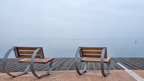 Tag: mare, sedie, legno, boa, due, panchine, orizzonte.