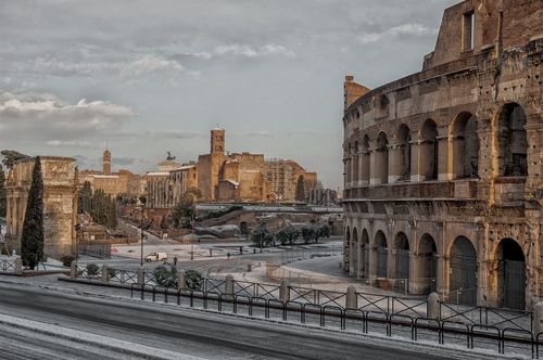 Tag: colosseo, roma, neve, inverno, archi, strada, monumenti.