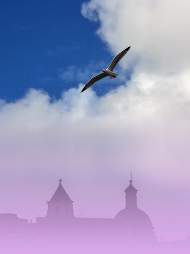 Foto dell'autore brontosal candidata al contest fotografico chiese su Dizy. Data inserimento: lunedì 31 marzo 2014. Titolo: Quel gabbiano in volo sulla millenaria Puteoli...