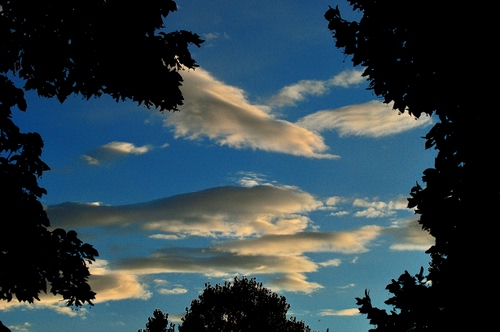 Tag: nuvole, cielo, alberi, azzurro, controluce, bianco, grigio, nuvola, foglie, fronde, nero, rami.