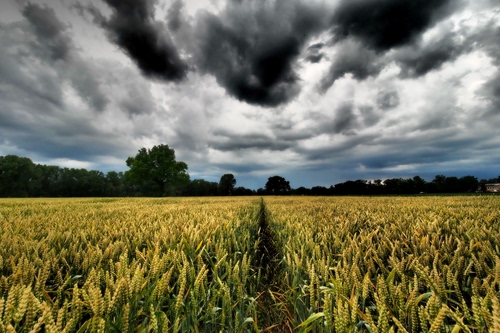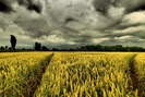 Belle queste nuvole bianche e nere su campo di grano.