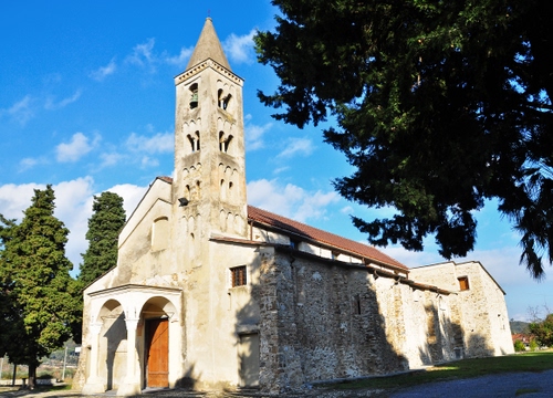Villanova d'Albenga - Sita nei pressi del locale cimitero, fu costruita nel XII secolo in stile romanico. La torre campanaria cuspidata e aperta da bifore del XIII secolo.