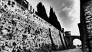 Tag: torre, castello, ponte, alberi, nuvole, bianconero, arco, archi, cipressi, fortezza.
