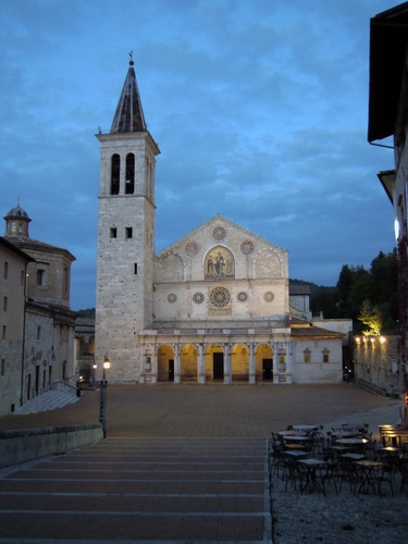 Il Duomo di Spoleto fotografato all'imbrunire.