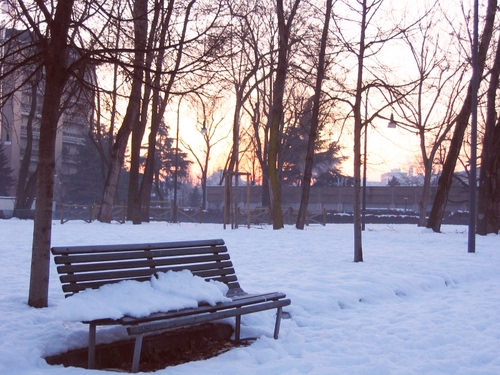 Foto dell'autore airfranz candidata al contest fotografico panchina su Dizy. Data inserimento: domenica 6 aprile 2014. Titolo: Innevata all'alba