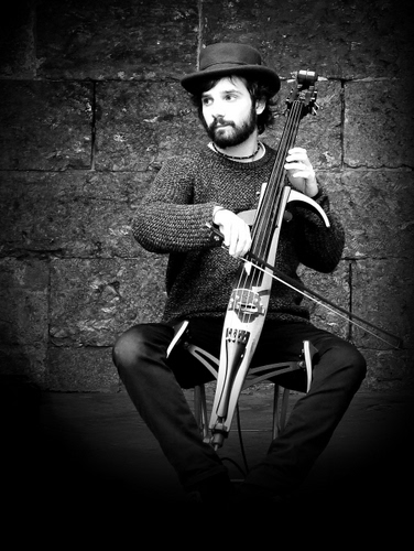 Tag: musicista, musica, cappello, bianconero, archetto, barba, suonare, suonatore, strumento, artista.