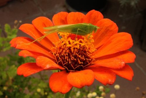 Fiore di specie a me ignota, con insetto di specie a me nota (cavalletta)