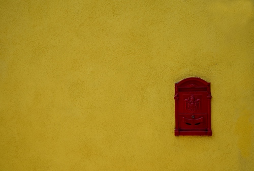 Cassetta postale su parete gialla