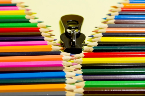 Tag: colori, cerniera, matite, zip, rosso, verde, giallo, pastelli, multicolore, rosa, nero, punte, marrone, viola, arancione, blu, celeste, legno.