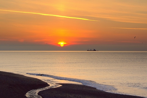 Tag: mare, tramonto, spiaggia, sole, nave, acqua, orizzonte.