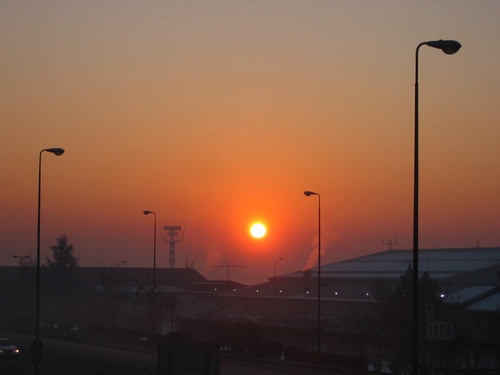 Alba d'inverno alla periferia est di Milano.