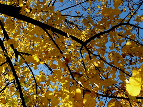 Tag: giallo, foglie, rami, albero, cielo, autunno.
