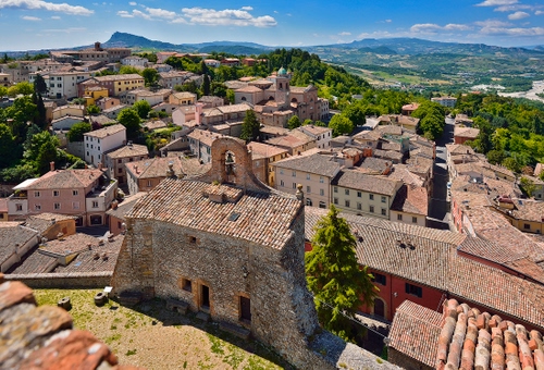Veduta dei tetti dalla Rocca Malatestiana di Verucchio .