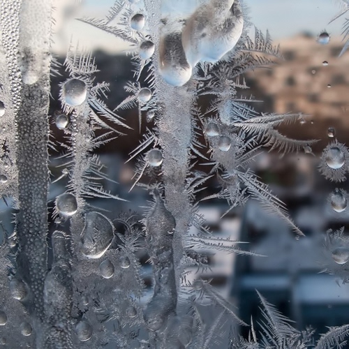 Foto bella, originale e perfettamente a tema che mi evoca i ricordi dell'infanzia... i disegni del ghiaccio sulle finestre