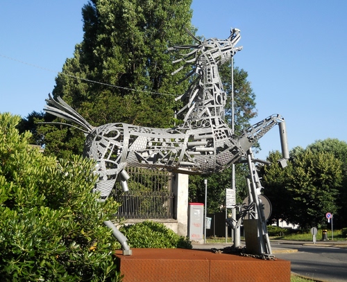 Cavallo in ferro fatto con materiali di recupero dal "riciclartista" Pietro Villa e posto sulla rotonda antistante la piazza di Besana in Brianza