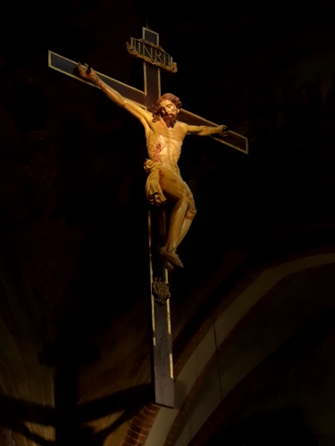 Altri tag (senza riscontro): piedi, chiodi, crocifissione, buio, duomo, marrone, luci, devozione, archi, scultura, interno, inri, religione, cristiani, braccia, mani.