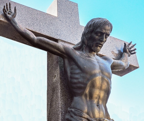 Tag: croce, gesù, mani, crocifisso, cielo, cristo, braccia, statua, volto, pietra, bronzo, azzurro, marmo, viso.