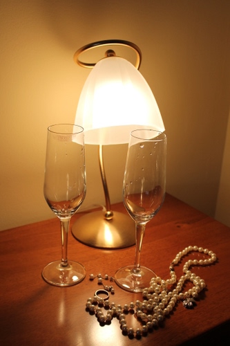 Tag: bicchieri, collana, perle, lampada, luce, anello, orecchini.