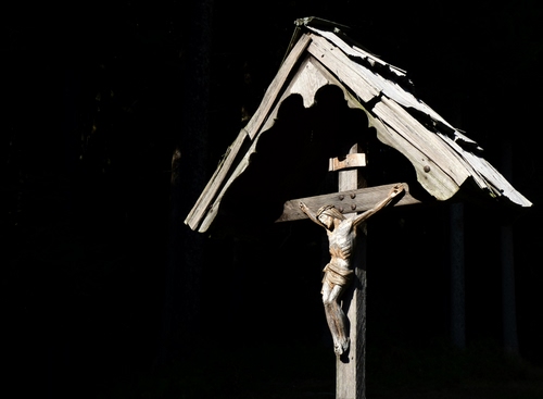 Altri tag (senza riscontro): religione, fede, silhouette, archi, corpo, assi, inri, scandole, scultura, chiodi, triangolo, bianconero, bianco.