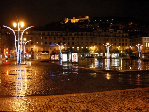 piazza invasa dai riflessi a Lisbona