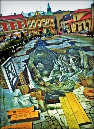 Scorcio della piazza di Wielitzka (Polonia) dove è stato dipinto uno scorcio della Miniera di sale.