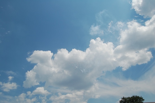 395° Fuochi d'artificio tra nuvole e cielo azzurro | |