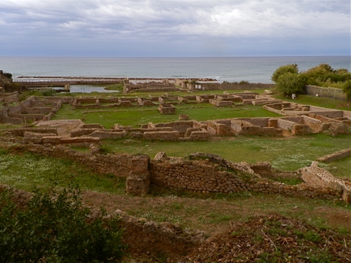 Tag: mare, cielo, rovine, ruderi, nuvole, verde, erba, antichità, alberi, arbusti, cespugli, pietre, archeologia, panorama, paesaggio.