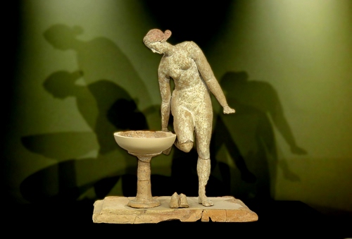 Figura femminile accanto a "louterion" (vasca lustrale) II secolo a.C. Museo archeologico Taranto