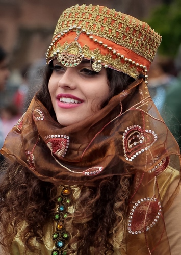 Tag: cappello, donna, sorriso, ragazza, gioielli, occhi, capelli, foulard, velo, copricapo, bocca, perle, costume, dorato, vestito, bottoni, marrone, abito, bellezza, denti, pendagli, ritratto, naso.