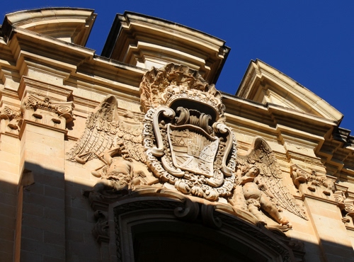 Grande stemma sulla facciata di un palazzo storico de La Valletta, a Malta.