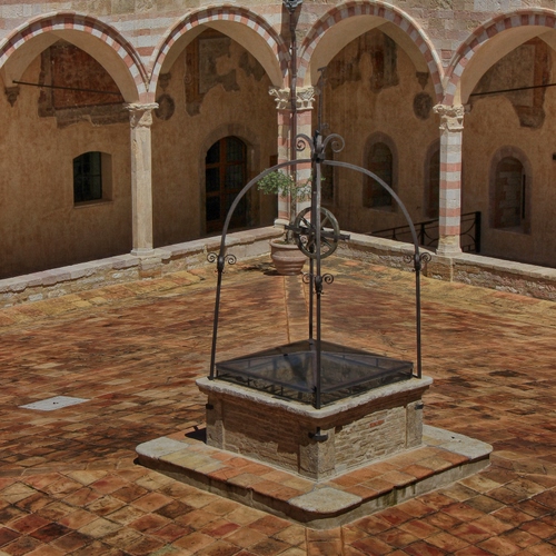 Altri tag (senza riscontro): pianta, colonna, cerchio, portici, corte, cortile, porticato, colonnato, finestra, protezione, scalini, chiostrina, tombino, arco, mattoni, vasi, abbazia, righe.