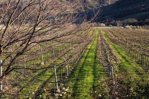Filari di viti in livrea invernale a San Felice del Molise (CB).