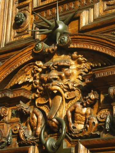 Tag: legno, lingua, punte, portone, scultura, mascherone, occhi, marrone, maschera, demoni, metallo, batacchio, intarsio, intarsi, diavoli, scolpito, battente, naso.