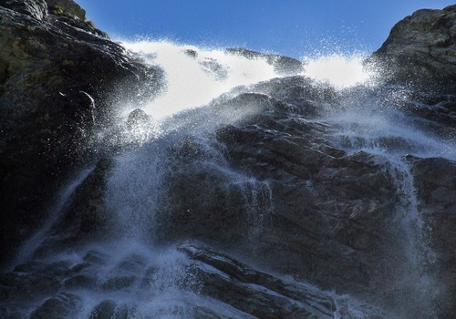 Tag: acqua, cascata, rocce, cielo, azzurro, montagna, roccia, torrente, cascate, natura, spruzzi, gocce, schiuma.
