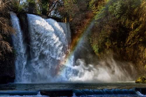 Tag: acqua, arcobaleno, cascata, piante, verde, alberi, fiume, bianco, salto, schiuma, rami.