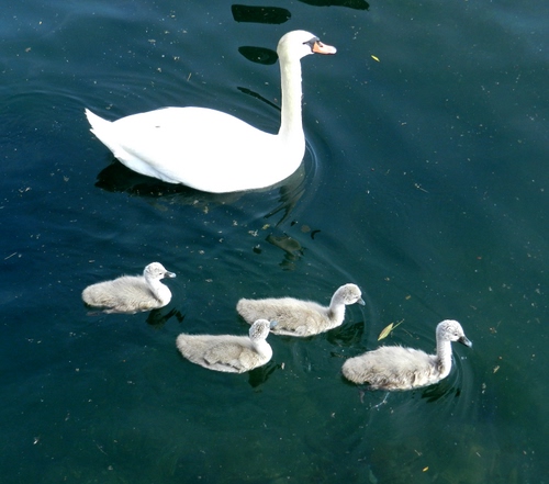 I piccoli cigni,alla nascita e fino al raggiungimento dell'età adulta mantengono un piumaggio assai poco attraente (in genere d'un colore grigiastro, bianco sporco) ma assai più mimetico - ed utile quindi alla sopravvivenza - di quello, bello ma vistoso, degli adulti.