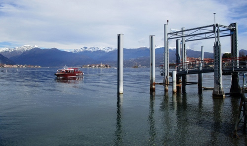Il pontile dell'imbarcadero di Carciano (frazione di Stresa), di fronte alle Isole Borromee (Lago Maggiore).