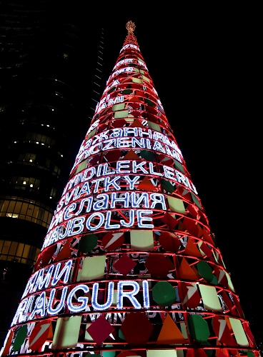 Auguri natalizi in piazza Gae Aulenti, a Milano.