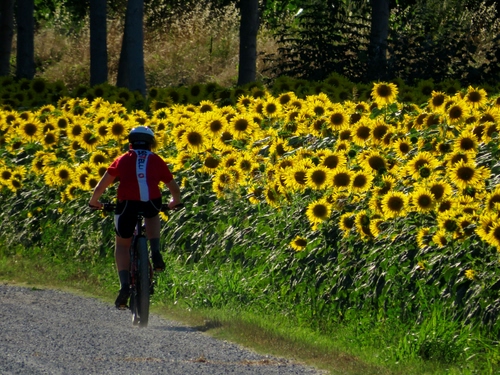 Foto dell'autore bitreker candidata al contest fotografico estate su Dizy. Data inserimento: venerdì 5 ottobre 2018. Titolo: Pedalando in mezzo ai girasoli