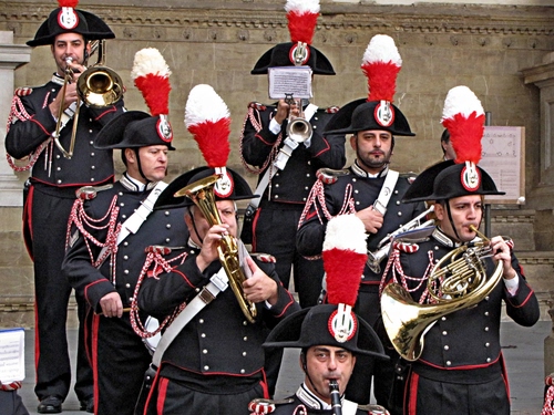 Tag: carabinieri, banda, strumenti, rosso, cappelli, bianco, divise, musicisti, musica, pennacchi, nero, pennacchio, piume, trombe, uniforme, divisa, militari.