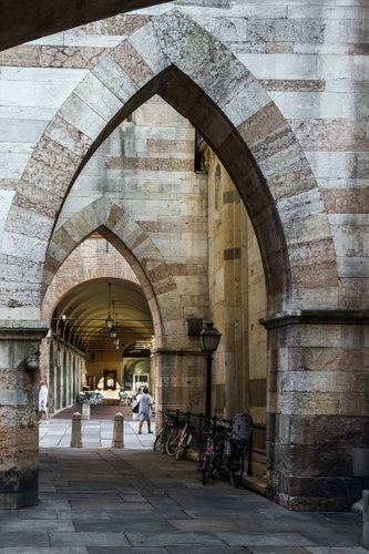 Tag: archi, biciclette, lampioni, portici, passanti, persone, lampione, colonne, scorcio, prospettiva, arco.